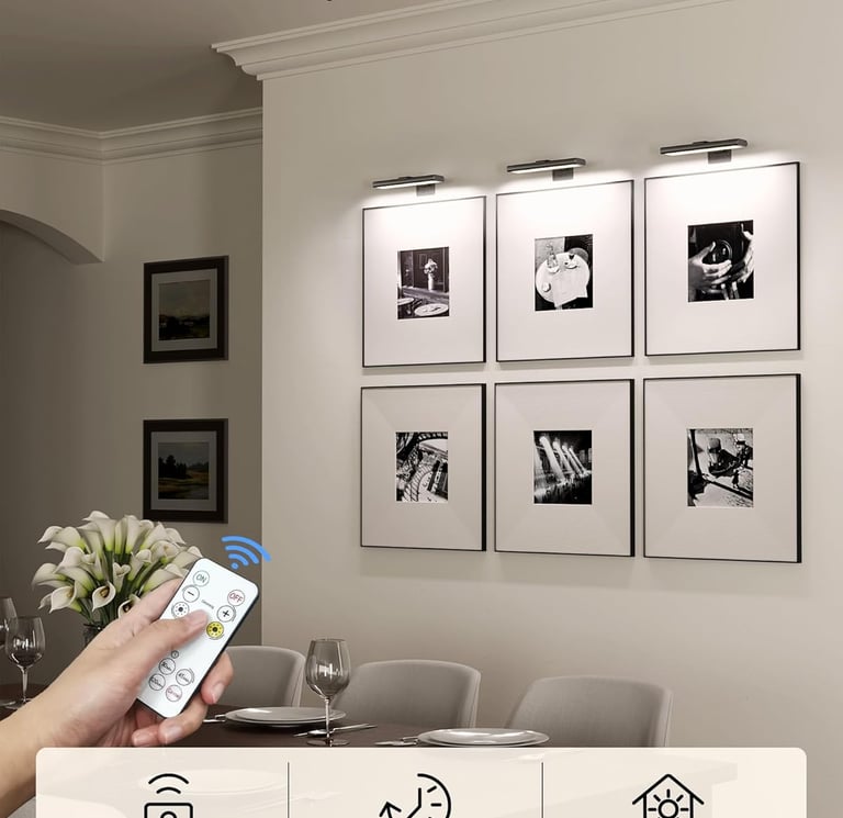 If you want your wall to look like it belongs in a boutique hotel, add wireless picture lights.